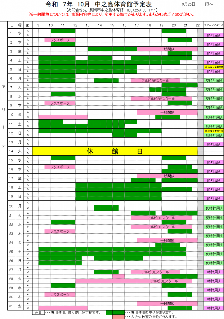 最新の空き状況につきましては、電話または窓口でお問合せ下さい。